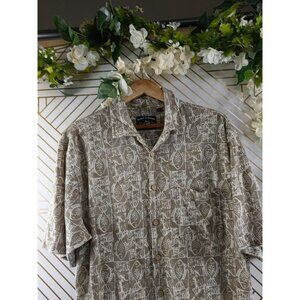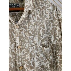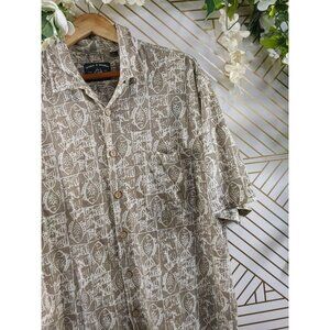 Dickie Walker Men's Tan Fish Print Short Sleeve Button Up Shirt Size Medium