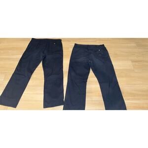 This lot of two Dickies 874 Original Fit Work Pants in Navy Blue Twill Chino is perfect for any occasion, be it travel, casual wear, or workwear. The pants come in size 44 with a 32-inch inseam and a mid-rise fit. The flat front and straight leg style with a zipper and hook & eye closure make them a versatile addition to any wardrobe.