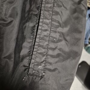 Classic black button up jacket by Dickies, size Small. Has a few small marks and slight snags, plus the one rip shown.