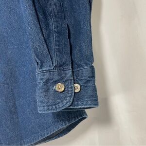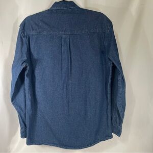 This Dickies shirt features a classic blue hue, perfect for casual settings. Its long sleeves and button-down design offer a timeless look, while the durable fabric ensures comfort and longevity. Measurements in photos