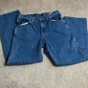 Good condition with minor wear. No major flaws. Classic blue denim jeans by Dickies. Features a straight leg design. Perfect for casual wear.