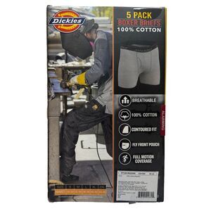 Dickies Boxer Briefs Size Large 5 Pack 100% Cotton Black Underwear Fly Pouch
