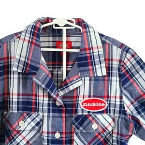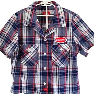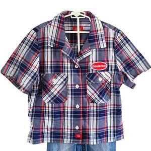 Dickies youth shirt, boys plaid button-down, size 6/7 top, summer school shirt, western work shirt, short sleeve Dickies shirt