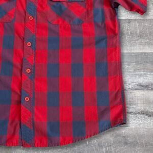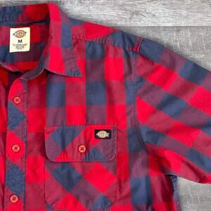Dickies Buffalo Check Plaid Button Up Shirt Mens M Short Sleeve Red Navy Pockets