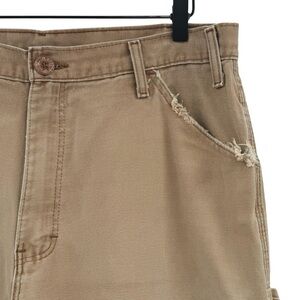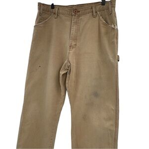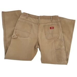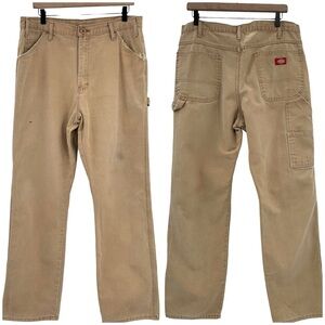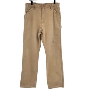 Dickie's Carpenter Pants Heavy Canvas Workwear Cargo Tan Brown 100% Cotton | 34