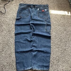 Dickies Carpenter Work Pants Mens 42x30 blue straight Fit Hammer Loop Cotton