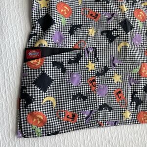 The Dickies Checkered Halloween Scrub Top in size M is a festive and fun addition to any medical professional's wardrobe. Featuring a colorful pattern of pumpkins, black cats, and moon stars, this top is perfect for adding a touch of Halloween spirit to your work attire. Made from comfortable cotton material, this top is designed specifically for women and offers a stylish and functional option for celebrating the holiday season in the medical healthcare industry.