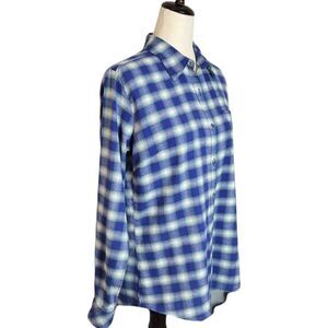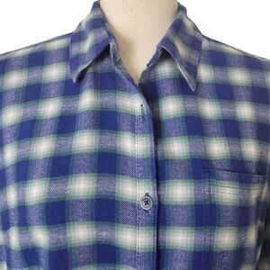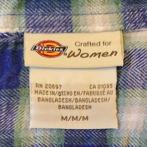 Dickies Crafted For Women Blue & Green Plaid Button Down Flannel Shirt