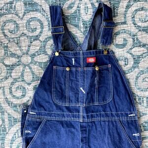 Dickies Denim Bib Overalls Dark Wash Straight Leg Jumper Workwear Dungarees