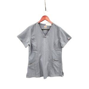Dickies Dynamix Womens V-Neck Scrub Top Pewter Medium Stretch Fabric Lightweight