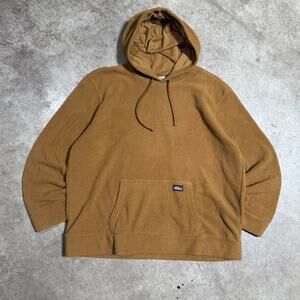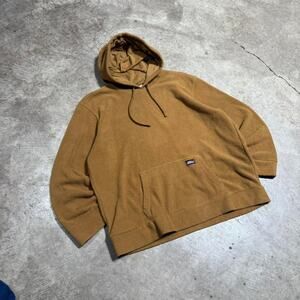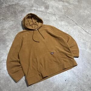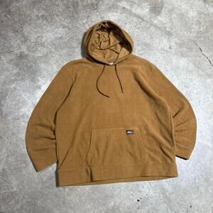 fleece hoodie, oversized, tan, pullover, casual, warm, cozy, relaxed fit, streetwear, layered style
