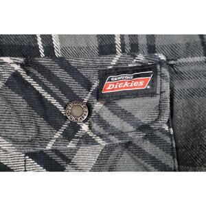 Dickies Jacket Mens Medium Black Gray Plaid Flannel Hooded Insulated Workwear