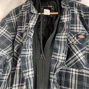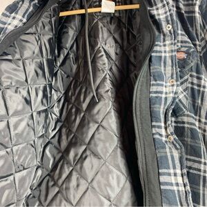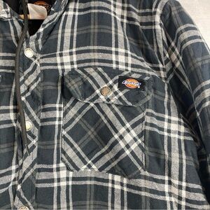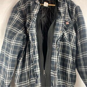 Dickies Jacket Quilt Lined Black Mens Large Cotton Hooded Full Zip Plaid Double