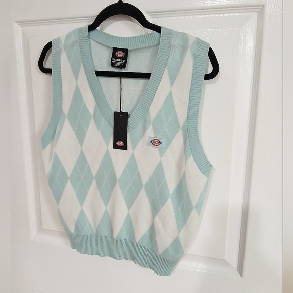 Dickies Juniors Argyle Sweater Vest Mint White Preppy Knit Pullover XL ACADEMIA