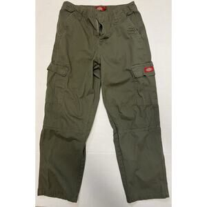 Dickies Juniors Relaxed Fit Straight Leg Cotton Cargo Pants Green Size 3R