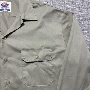 Classic Dickies men’s long sleeve work shirt in khaki beige. Durable poly/cotton twill with utility styling, dual chest pockets, and button-up front. Built tough for workwear but versatile for casual streetwear.