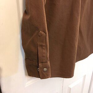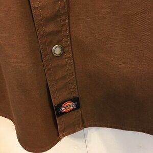 Dickies brown canvas shirt jacket with 2 front chest pockets, one pocket has a ink pen holder.