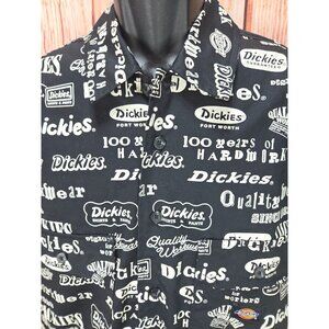 This short-sleeve work shirt features a striking black and white graphic design with the Dickies logo. Made from 100% cotton, it offers comfort and style.