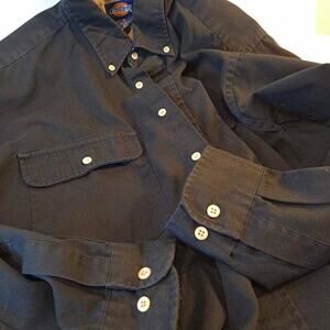 Dickies Men's Button Down Shirts Black Long Sleeve Collar Pockets M