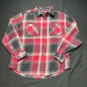Dickies Men's Flannel Shirt L Red/Black Plaid Long Sleeve Heavy Weight Cotton