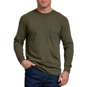 Dickies Mens Olive Green Long Sleeve Pocket Tee M 100% Cotton EUC