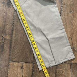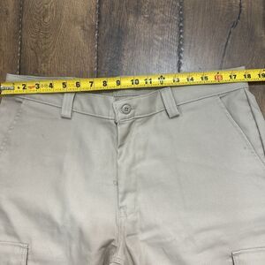 Introducing these Dickies Men's Pants in a relaxed fit with a straight leg design. These pants feature a carpenter cargo style with multiple pockets for your convenience. The pants are made of a durable polyester and cotton blend fabric, making them perfect for outdoor activities and workwear. The pants come in a size 36 waist and 32 inseam, with a mid-rise of 10-12 inches. They are available in a solid beige color and feature button and zipper closures with the Dickies logo on the side. These pants are machine washable and perfect for winter, fall, and spring seasons. Ideal for travel, weddings, parties, cocktails, and more.