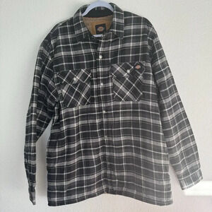 Dickies Mens Sherpa Lined Flannel Shirt Large Plaid Black