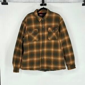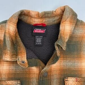 Dickies Men's Tan and Gray Plaid Fleece-Lined Snap Front Jacket - Size XL