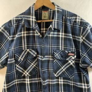 Dickies Mens Tartan Plaid Button Shirt Sz L Blue Workwear Street Skate Grunge