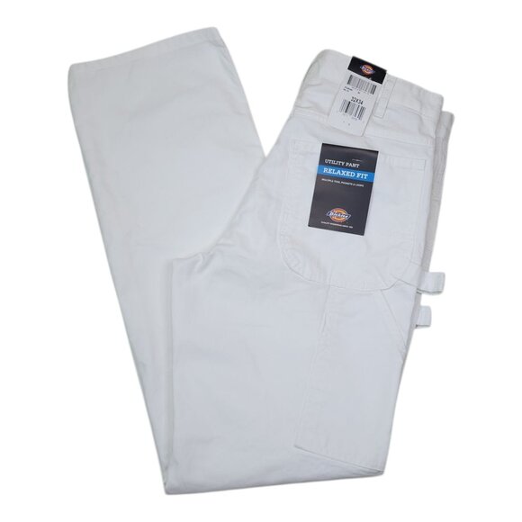 Dickies Mens White Utility Pants Relaxed Fit Multiple Tool Pockets & Loops 32X34