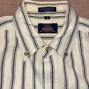 Stylish short-sleeve shirt with classic stripes. Features button-down front and chest pocket. Perfect for casual outings.