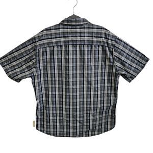 Dickies Men's XL Short Sleeved Button Down Shirt Dark Blue Black Checker Plaid
