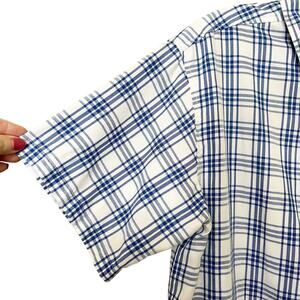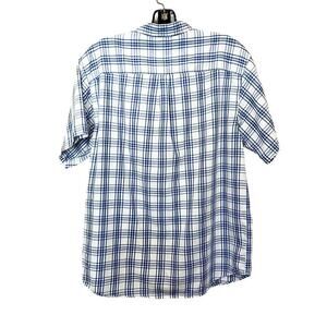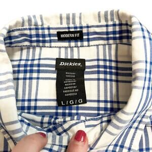 Dickies Modern Fit Short Sleeve Blue White Windowpane Casual Button Up Size L