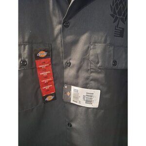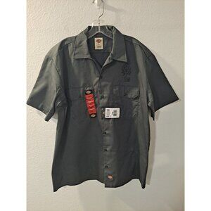 Dickies Original Fit Men Gray Work Button Down Shirt Company Logo Large NWT