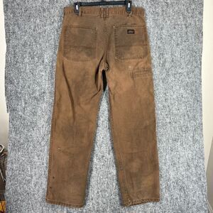 Dickies Pants Mens 32x31 Brown Canvas Worn Thrashed Stained Worn Skater Urban