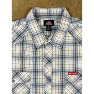 Dickies Plaid Pearl Snap Shirt Men’s 2XL Blue Western Short Sleeve