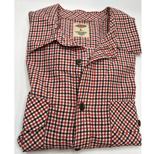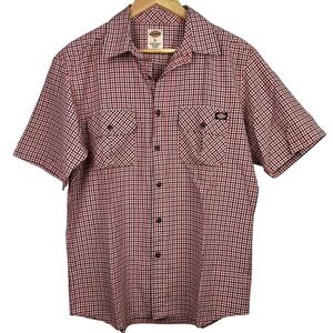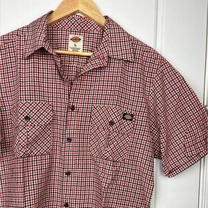 Dickies Plaid Red Black White Short Sleeve Pockets Button Up Shirt Men's Large