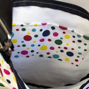 Dickies Stylish crossbody bag with colorful polka dots. Perfect for adding a fun touch to any outfit. Mark on the back as shown in photo.