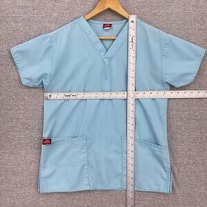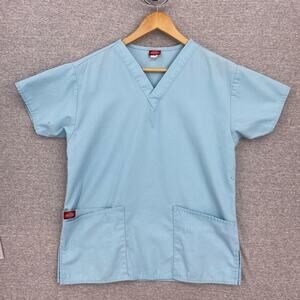 Dickies Scrub Top Womens Medium Blue Nursing Vet Medical Uniform Short Sleeve