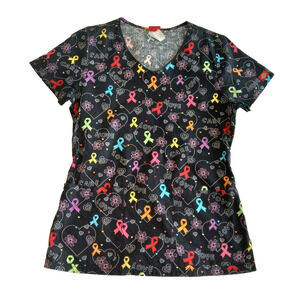 Dickies Scub Top Women's S Black Ribbons Cause Awareness V-neck Medical Uniform