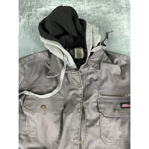 Dickies Sherpa Lined Hooded Work Jacket Gray Size Large L 42-44 Excellent