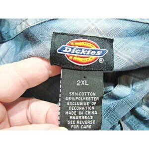 Dickies Shirt Mens Blue Gray Black Plaid Button Up Work Dress Front Pockets 2XL