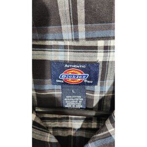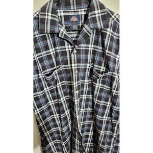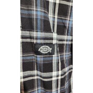 Dickies Shirt Mens Large Black Blue Plaid Short Sleeve Button Up Work Casual