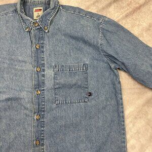 Vintage Genuine Dickies men's long sleeve heavy duty denim work shirt.