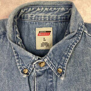 Dickies Shirt Mens Large Blue Denim Long Sleeve Casual Work Collared Genuine VTG