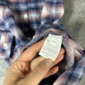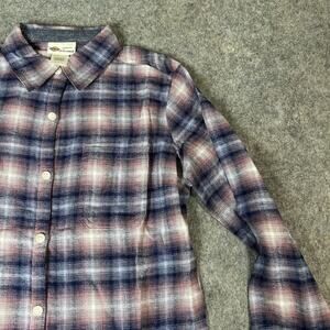 Dickies Shirt Women's Small Plaid Flannel Button Down Shirt Workwear Pink Blue