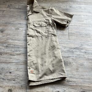 This Dickies short sleeve work shirt in size Small features a durable desert sand brown/tan color, perfect for workwear or casual utility style. Built for comfort and long-lasting wear, it’s a practical and classic addition to any wardrobe. #DickiesWorkShirt #ShortSleeveShirt #WorkwearStyle #UtilityShirt #CasualFashion