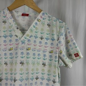 Dickies Small Honey Bee Print Rainbow Scrub Top Nurse Medical Field V Neck