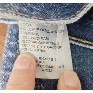 Medium wash straight leg jeans. Small bleach spot on the back as shown in the photos. Size 42x32. *Actual inseam 30.5 in