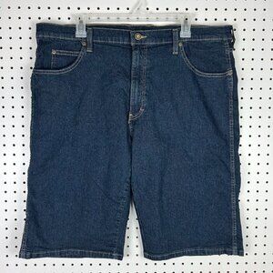 Dickies Wide Leg Denim Blue Jean Shorts Sz 38 Work Wear JNCO Skate Baggy Faded